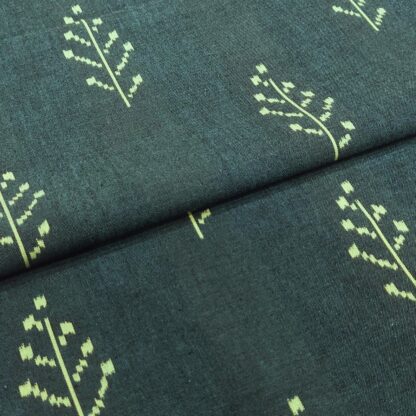 ボタニカルな久留米絣。落ち着いた緑が印象的です。